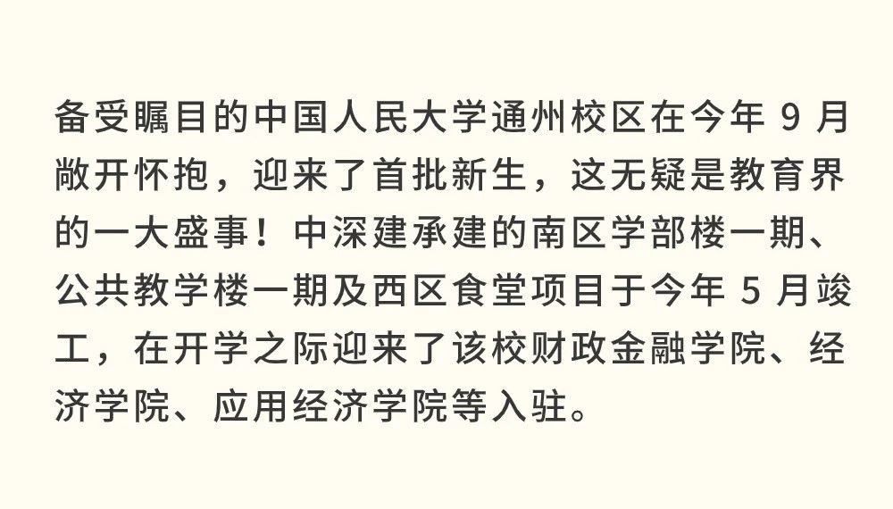 教育建筑集錦 | 中深建承建中國人民大學(xué)通州校區(qū)項(xiàng)目開學(xué)啦!