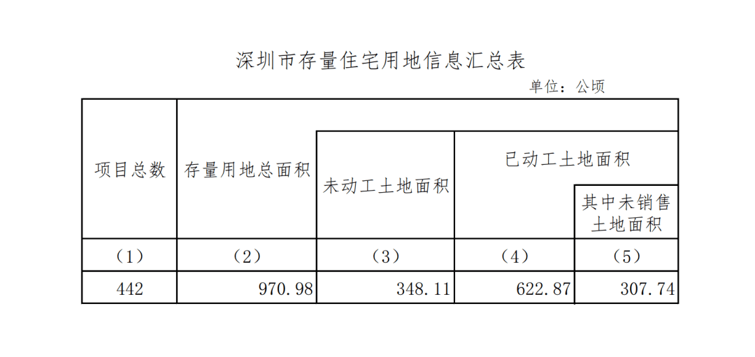 據(jù)發(fā)布的信息顯示,截至2020年12月31日,深圳存量宅地共有442個,總面積970.78公頃。