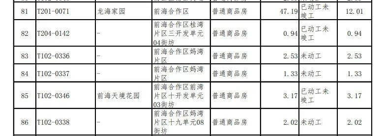 前海合作區(qū)存量宅地共有6個,其中桂灣1個,媽灣3個,前灣1個,商品房龍海家園還有12.01公頃未銷售用地。