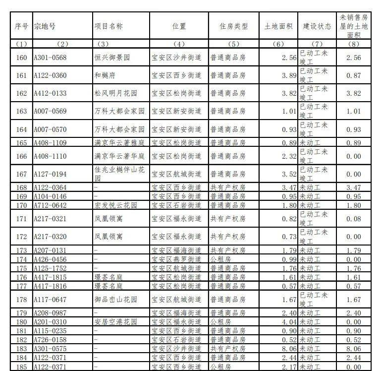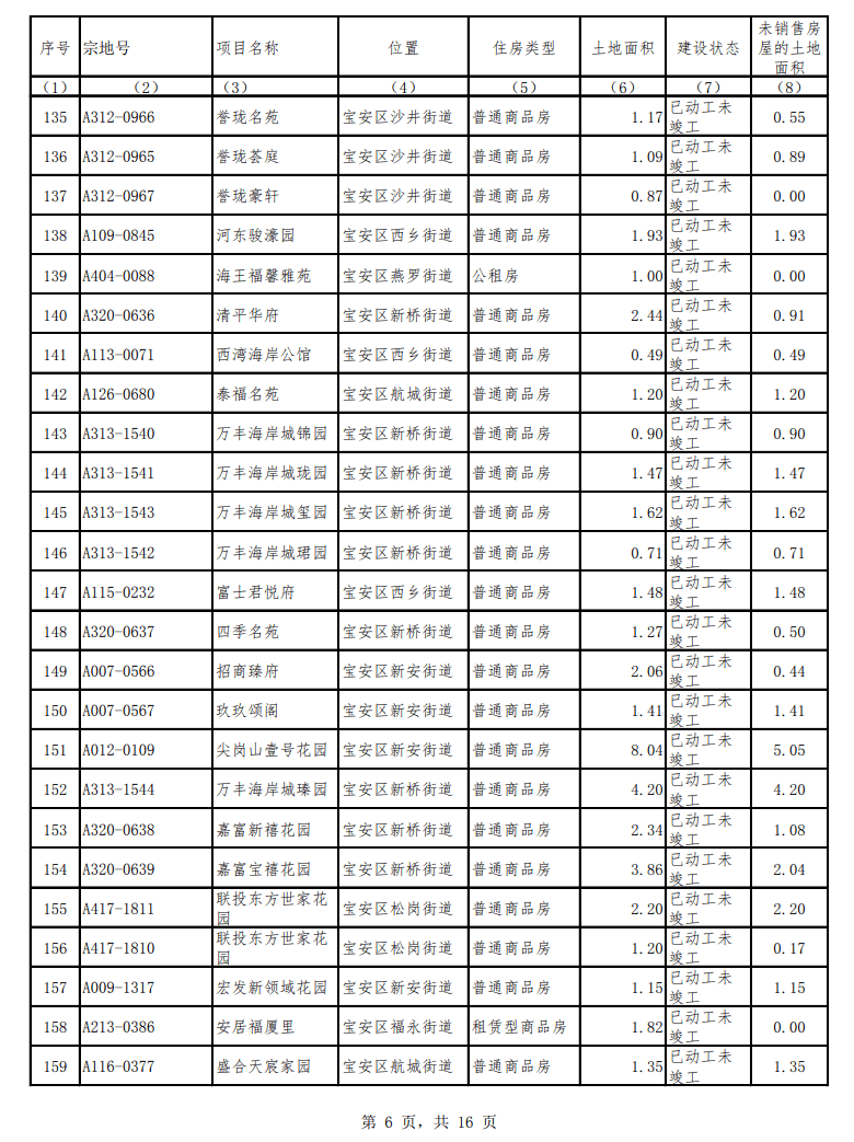 寶安區(qū)存量宅地共有76個,其中新安街道12個,西鄉(xiāng)街道16個,福永街道6個,松崗街道8個,沙井街道9個,新橋街道10個,石巖街道4個,福海街道3個,燕羅街道3個,航城街道5個。