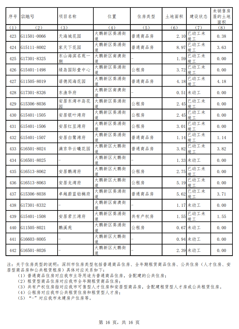 大鵬新區(qū)存量宅地共有23個,其中大鵬街道8個,葵涌街道12個,南澳街道3個。