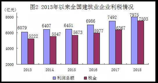 建企營業收入規模再創歷史新高 2018年,全國建筑業企業實現營業收入211992億元,首次突破20萬億元,達到歷史最高水平。其中,主營業務收入209339億元,比2013年增長38.5%,年均增長6.7%。 東中西部建企營收保持較好增長態勢 2018年東部地區建筑業企業實現營業收入111496億元,比2013年增長36.0%,年均增長6.3%; 中部地區實現營業收入50154億元,比2013年增長61.4%,年均增長10.0%; 西部地區實現營業收入43391億元,比2013年增長56.6%,年均增長9.4%; 東北地區實現營業收入6951億元,比2013年下降40.7%,年均下降9.9%。 除東北地區外,其他三個區域建筑業企業營業收入均連續五年保持穩定增長態勢。 從比重看,2018年東部地區建筑業企業實現營業收入占全國比重為52.6%,比2013年下降1.2個百分點;中部地區占比23.7%,提高3.3個百分點;西部地區占比20.5%,提高2.3個百分點;東北地區占比3.3%,下降4.4個百分點。 建企利潤和上交稅金總額 雙雙邁上7000億元新臺階 2018年,全國建筑業企業實現利潤總額7975億元,達到歷史最高水平,比2013年增長31.2%,年均增長5.6%;上繳稅金總額7503億元,增長43.7%,年均增長7.5%。全國建筑業企業實現利稅總額逐年增長,壯大了企業自身實力,為國家財政收入保持穩定增長作出了貢獻。 第四次全國經濟普查結果表明,2013年以來,隨著生產能力、生產規模的快速增長,全國建筑業企業(指具有總承包或專業承包資質的建筑業企業)經營效益保持較好增長態勢,企業利潤和上繳國家利稅穩定增長,為經濟社會持續平穩健康發展作出了積極貢獻。