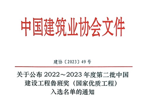 關(guān)于公布2022~2023年度第二批中國建設(shè)工程魯班獎(國家優(yōu)質(zhì)工程)入選名單的通知