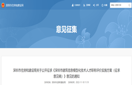 為加快推進深圳市建筑信息模型(BIM)深化應用,11月18日,深圳市住建局發(fā)布關于公開征求《深圳市建筑信息模型化技術人才職稱評價實施方案(征求意見稿)》意見的通知。