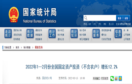 3月15日,國家統計局發布1—2月國民經濟相關數據。2022年1—2月份,全國固定資產投資(不含農戶)50763億元,同比增長12.2%。其中,民間固定資產投資29176億元,同比增長11.4%。