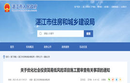 湛江市住建局《關于優化社會投資簡易低風險項目施工圖審查有關事項的通知》。