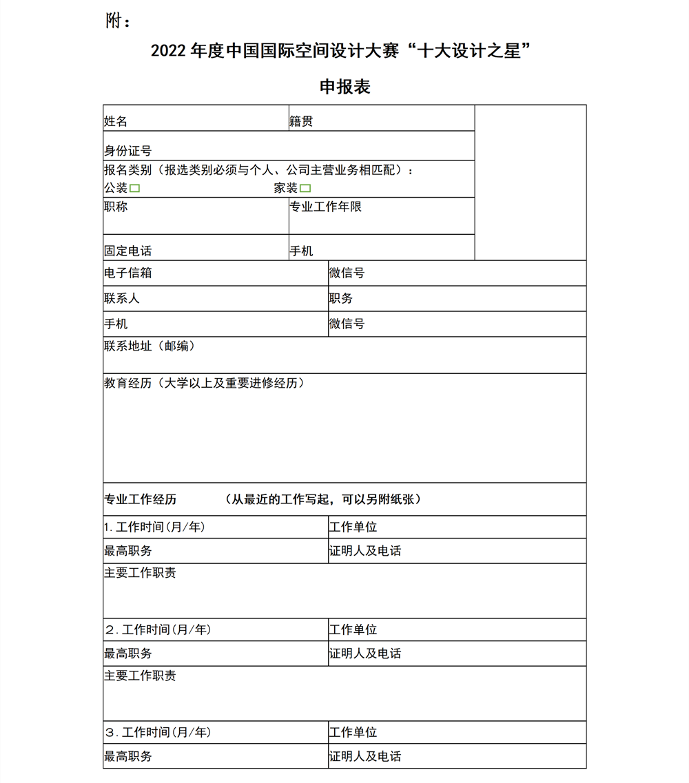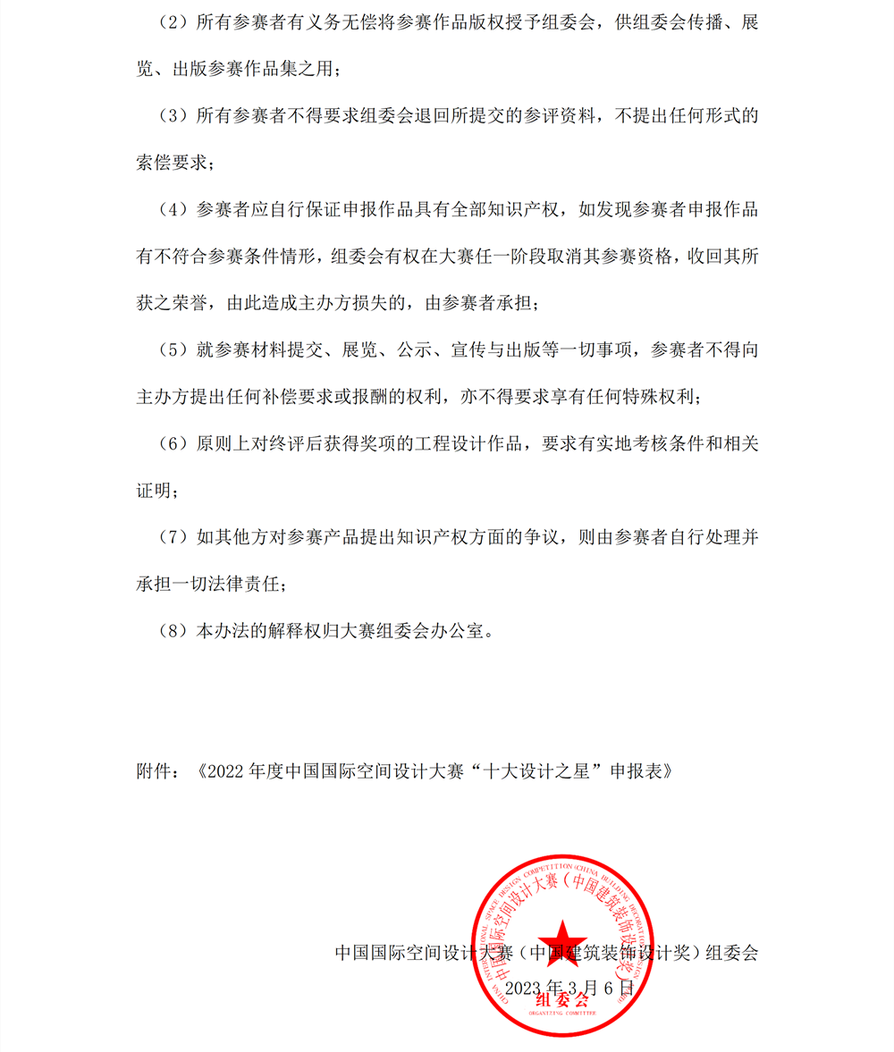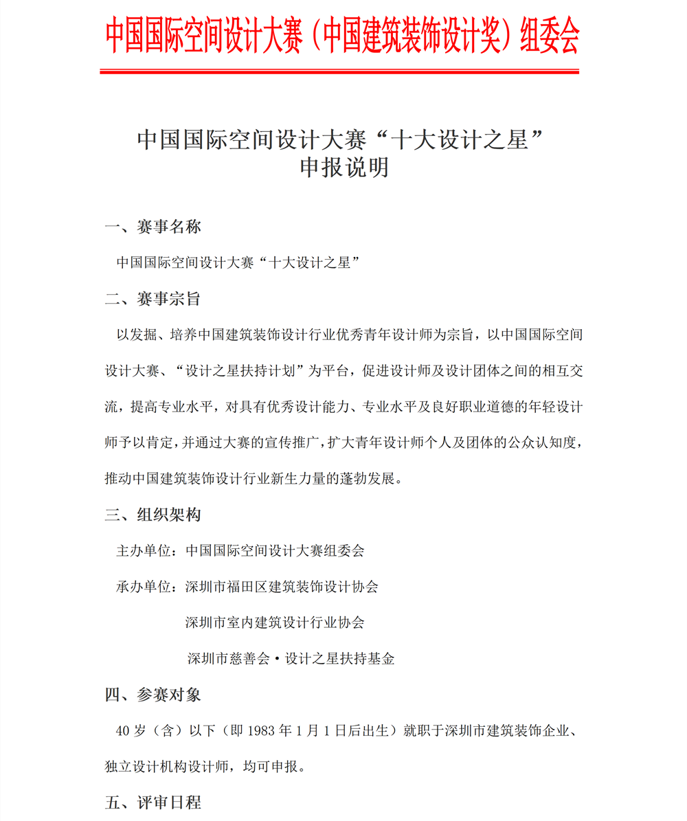 關于2022年度中國國際空間設計大賽“十大設計之星” 的申報說明